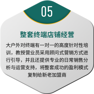专业市场运营团队一对一帮扶指导,每年由专家导师、总部董事长等,提供一系列营销实战培训,协助加盟商快速掌握经营及管理方式